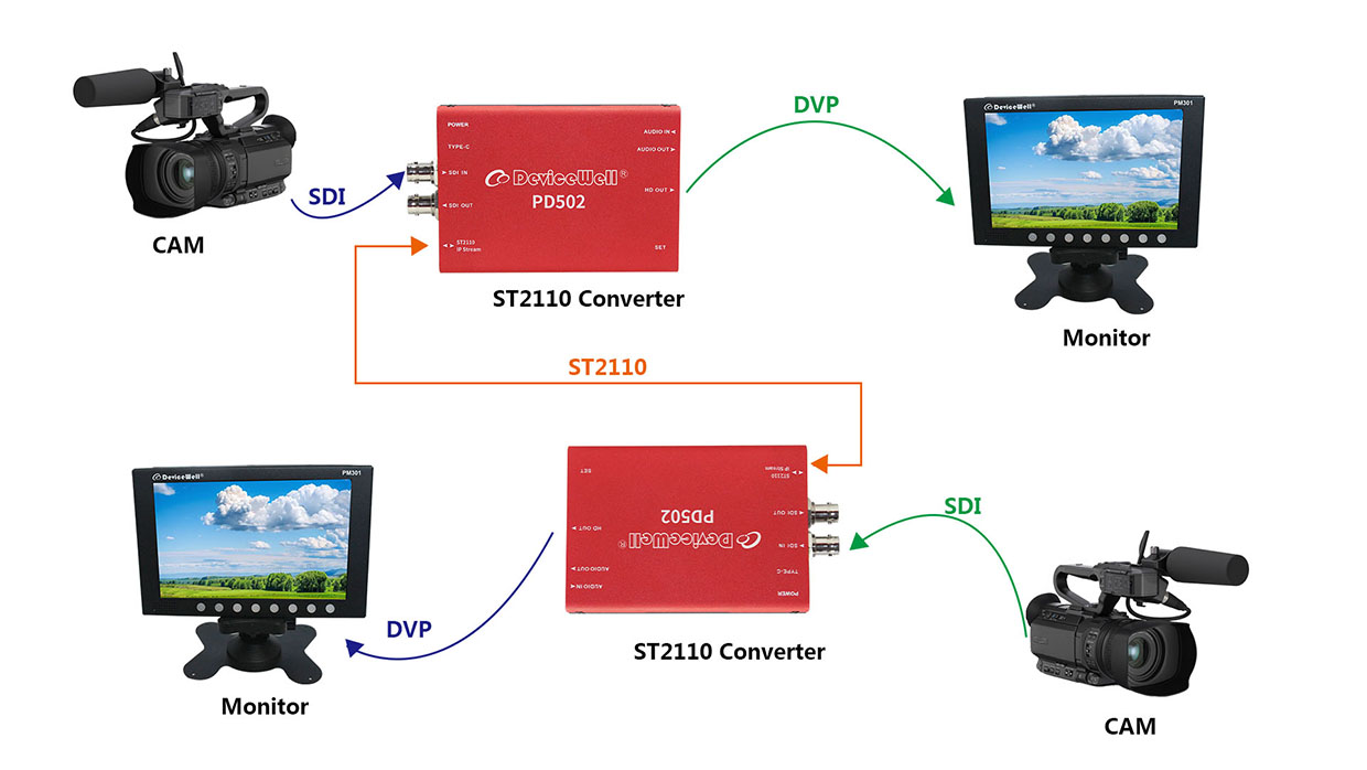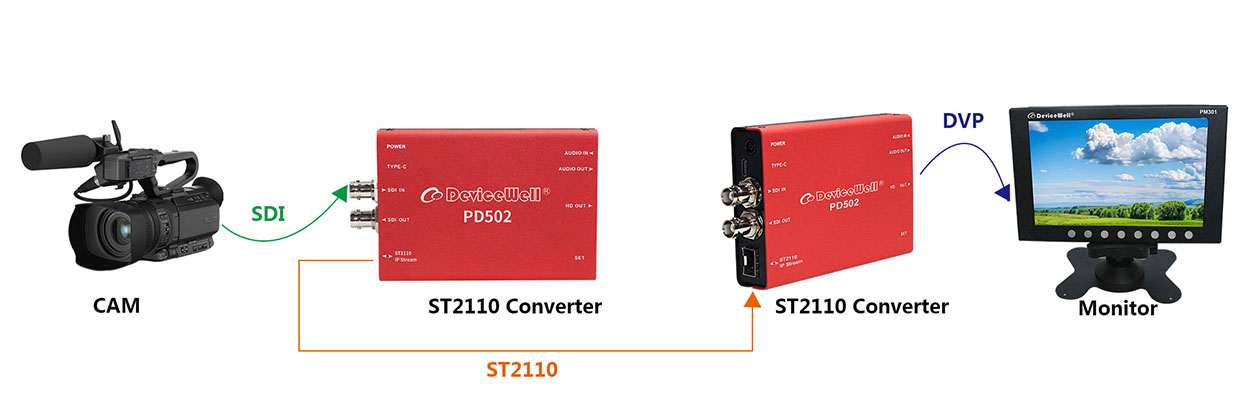 DEVICEWELL 2110 IP Converter-PD502(SDI/DVP/ST2110)Bidi Converter