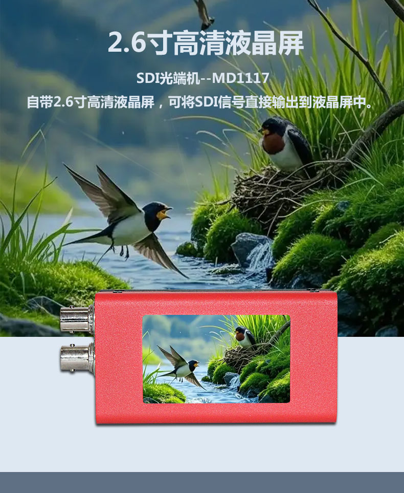 SDI光端机--MD1117 自带2.6寸高清液晶屏,可将SDI信号直接输出到液晶屏中。