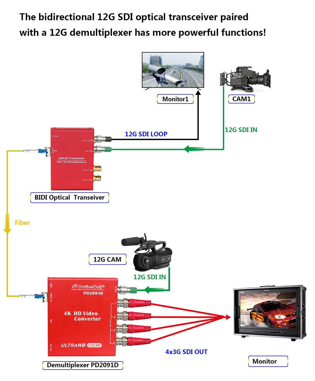 The bidirectional 12G SDI optical transceiver paired with a 12G demultiplexer has more powerful functions!