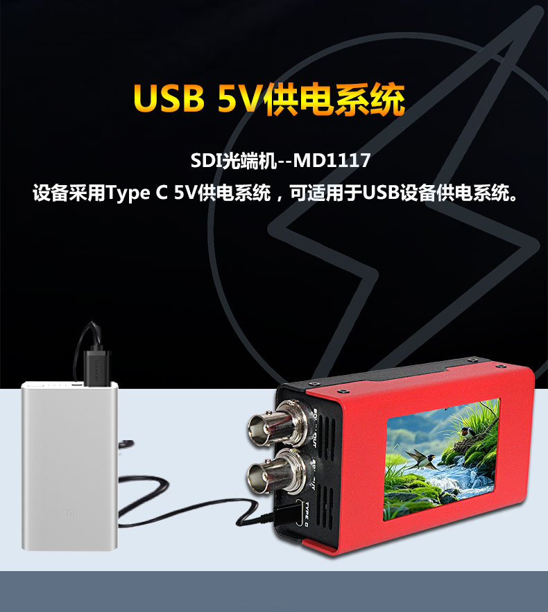 SDI光端机--MD1117 设备采用Type C 5V供电系统,可适用于USB设备供电系统。