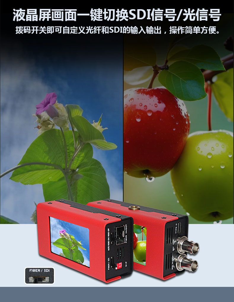 拨码开关即可自定义光纤和SDI的输入输出,操作简单方便。