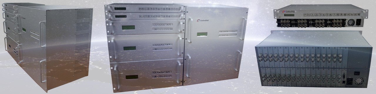 中帝威(DeviceWell)的数字混合矩阵,包括HD-SDI 数字高清矩阵、3G-SDI 数字高清矩阵,符合SMPTE 标准和ITU 标准,在3Gb/s 的码率下实现1080p/50Hz/60Hz,1.5Gb/s 的码率下支持1080i/50Hz/60Hz高清数字视频信号的切换传输,兼容HD-SDI、SD-SDI、DVB-ASI、嵌入式音频等多种数字信号格式,可通过10Mb/s~3Gb/s码率的数字信号。可选扩展SDI之外的HDMI/YPbPr/CVBS/DVI/VGA/DP/IP/光纤/双绞线等输入 /输出。